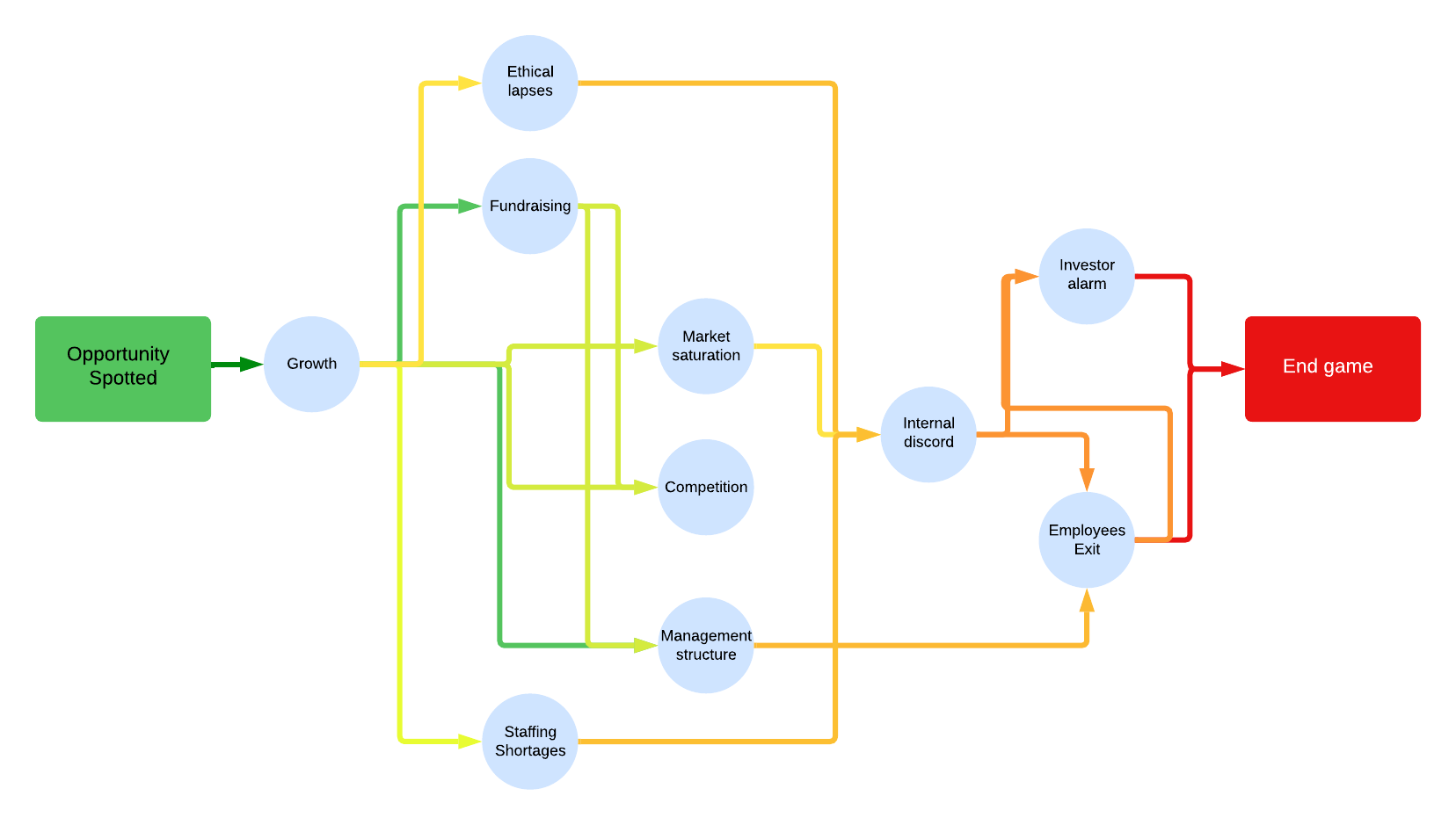 - Hoping a greater fool will buy startup. Maybe exploiting a funding bubble